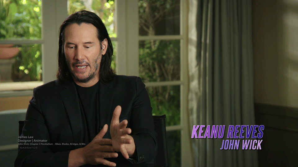 John Wick chapter 3 Parabellum behind the scenes interview lower third.